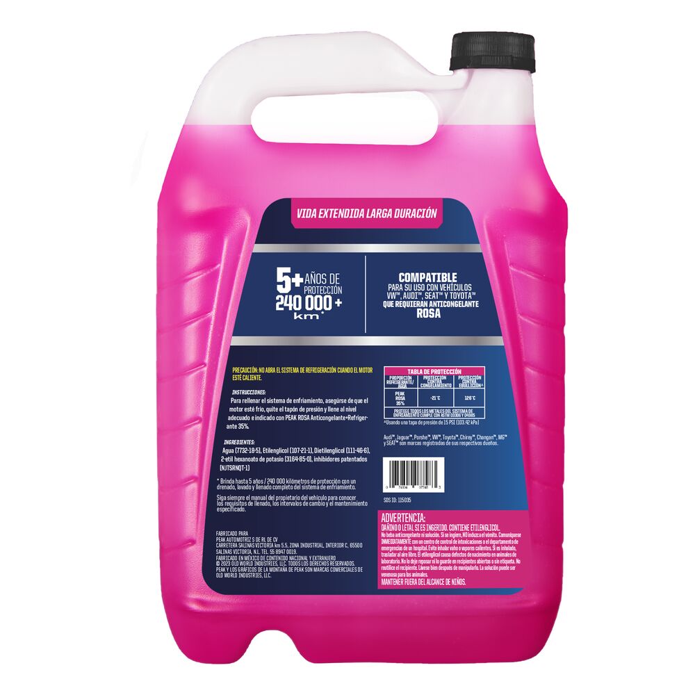 PEAK® OAT Vida Extendida de Aplicación Específica es un Anticongelante + Refrigerante que cuenta con una tecnología de larga duración y de vida extendida específicamente desarrollada para vehículos VW, Toyota, MG, SEAT, Chirey, Changan, Audi, Jaguar y Porsche que requieren Anticongelante+Refrigerante de color rosa.